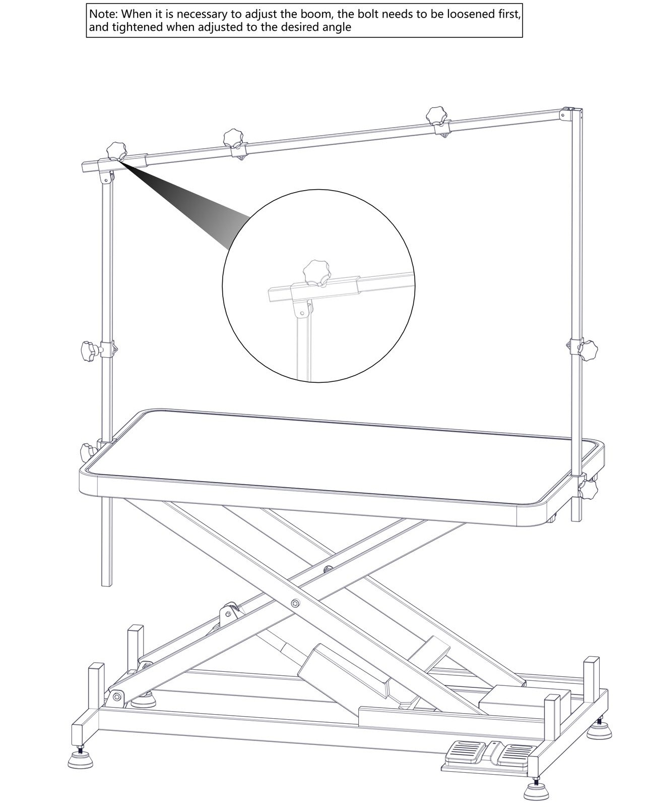 Les toiletteurs souhaitaient une tranquillité d'esprit ; nous l'avons intégrée. La table de toilettage électrique pour animaux est équipée d'un bouton d'arrêt d'urgence sur le bord de la table, d'un arrêt thermique automatique en cas de surchauffe du moteur et d'un bras de toilettage en aluminium de 2 mm avec des boucles à dégagement rapide qui ne pincent jamais la peau. Les coins arrondis et un passage de câble dissimulé éliminent tout risque d'accrochage, pour que même le plus turbulent des chiens reste en sécurité.