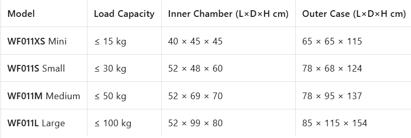 Le modèle WF011XS Mini (≤ 15 kg) est idéal pour les chats et les chats de petite taille ; le modèle WF011S Petit (≤ 30 kg) convient aux Beagles et aux Bouledogues français ; le modèle WF011M Moyen (≤ 50 kg) est adapté aux Border Collies et aux croisés Corgis ; et le modèle WF011L Grand (≤ 100 kg) peut accueillir un Golden Retriever ou un Malamute avec de la place en plus. Chaque cage est dimensionnée pour permettre à l’animal de se tenir debout naturellement, tout en assurant une bonne aération. - Conçu pour la réalité des salons