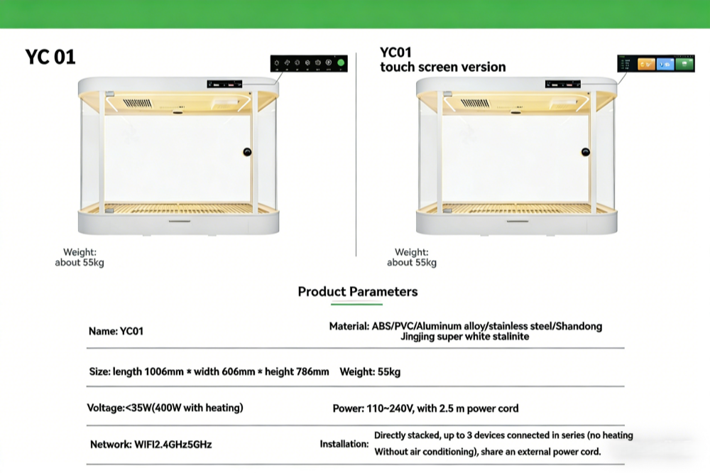 La cabine pour chien intelligente UP-YC01 est disponible en deux versions conviviales : la version fiable à boutons physiques, avec des commandes tactiles pour un accès rapide aux fonctions, et la version élégante à écran tactile, dotée d’un affichage réactif pour une gestion moderne et intuitive de votre cabine intelligente pour animaux de compagnie.