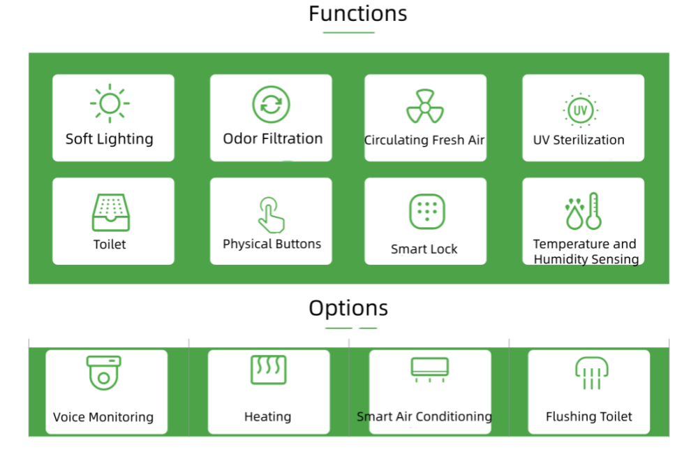 Améliorez votre expérience dans la cabane intelligente pour chiens grâce à des options supplémentaires : surveillance vocale pour des enregistrements en temps réel, chauffage pour une chaleur confortable, climatisation intelligente pour un contrôle de la température toute l’année et toilettes à chasse d’eau pour une hygiène sans contact.